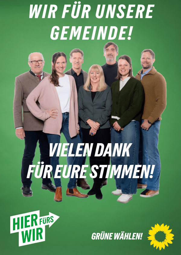 Unser gesamtes grünes Team wird sich dennoch weiterhin aktiv für unsere Gemeinde einsetzen – im Gemeinderat ebenso wie außerhalb, etwa beim Engagement für Wasserschutz, Digitalisierung und eine nachhaltige Entwicklung unserer Gemeinde.